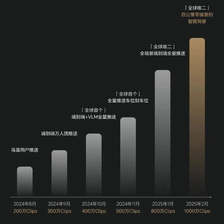 凭借与用户之间的直接联系,车企在数据积累上构建了坚实的壁垒。理想、奇瑞、吉利等车企纷纷宣布,其数据量已达到千万级别Clips(数据片段),而小鹏更是将数据规模翻倍,达到了2000万Clips。马斯克曾指出,对于端到端辅助驾驶系统而言,经过千万级别的Clips训练,系统将展现出惊人的表现。这似乎预示着,车企在数据积累上的优势将助力其更快触及大模型的升级临界点。