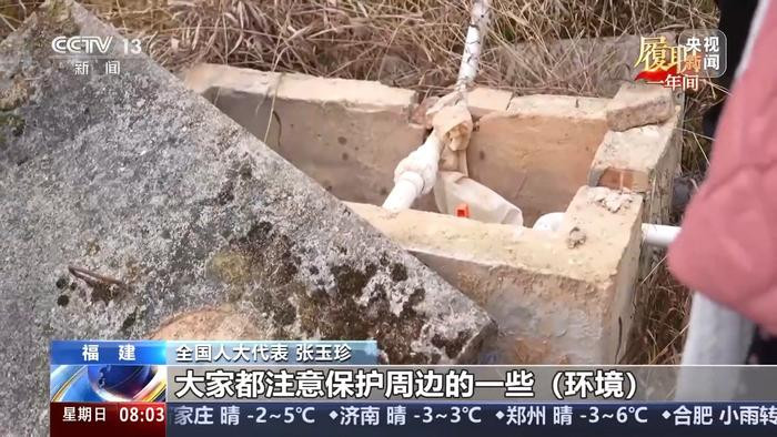 全国人大代表张玉珍:这个水还是很干净的。这口监测井从监测的规范上来讲,是不是有点简陋了一些?有一些标志,有一些信息需要设立。大家看到这口井,都注意保护周边的一些环境。